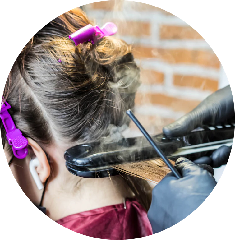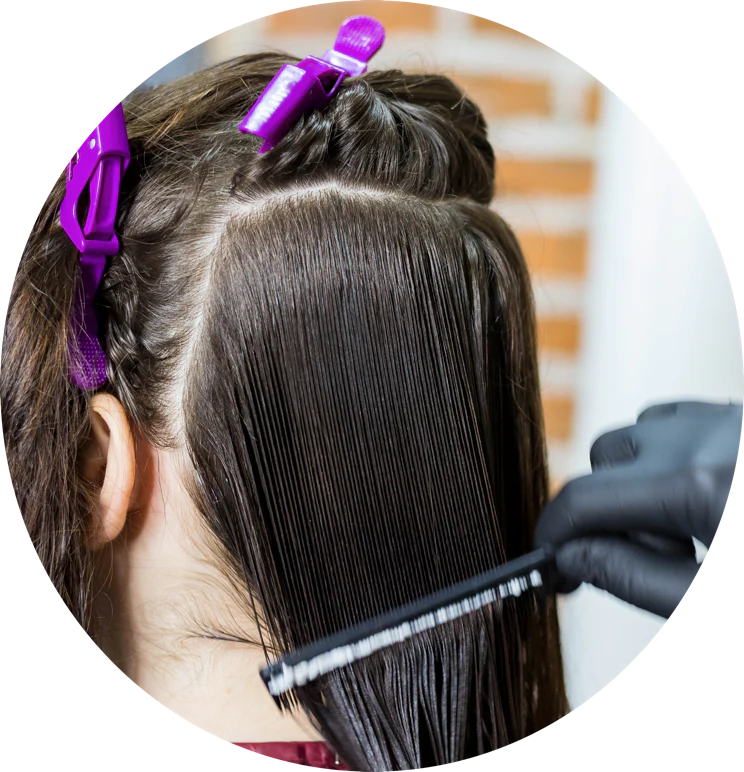 4. Tragen Sie das Keratin mit einem Pinsel 1 cm vom Haaransatz entfernt auf (nicht direkt auf die Kopfhaut auftragen), und kämmen Sie das Haar anschließend mit einem feinen Kamm, um das Keratin gleichmäßig zu verteilen und überschüssiges Produkt zu entfernen.